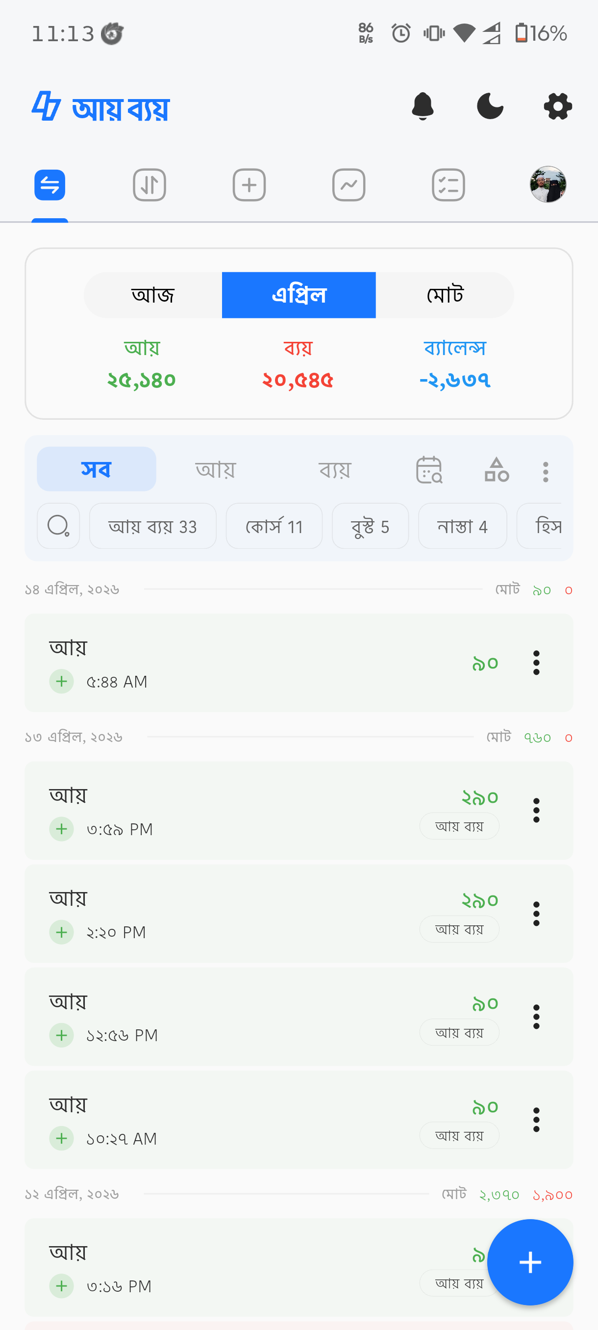 ব্যক্তি ও পরিবারের জন্য স্মার্ট আয়-ব্যয় ট্র্যাকিং অ্যাপ।